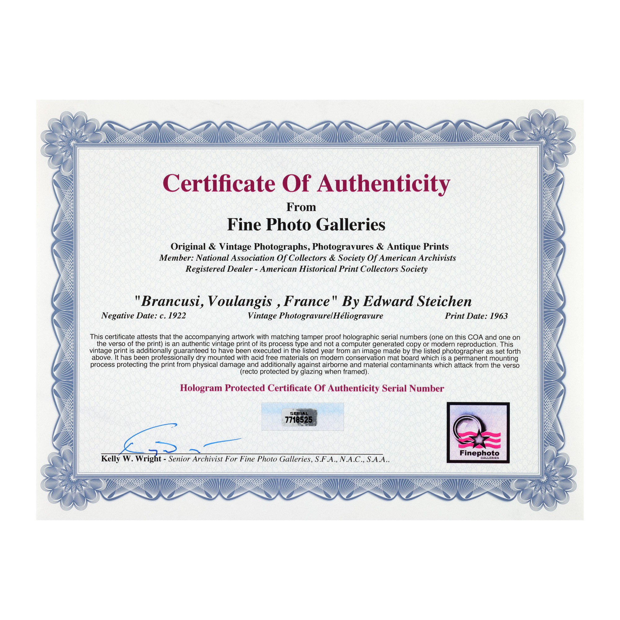 data negativului: cca. 1922; data imprimării: 1963